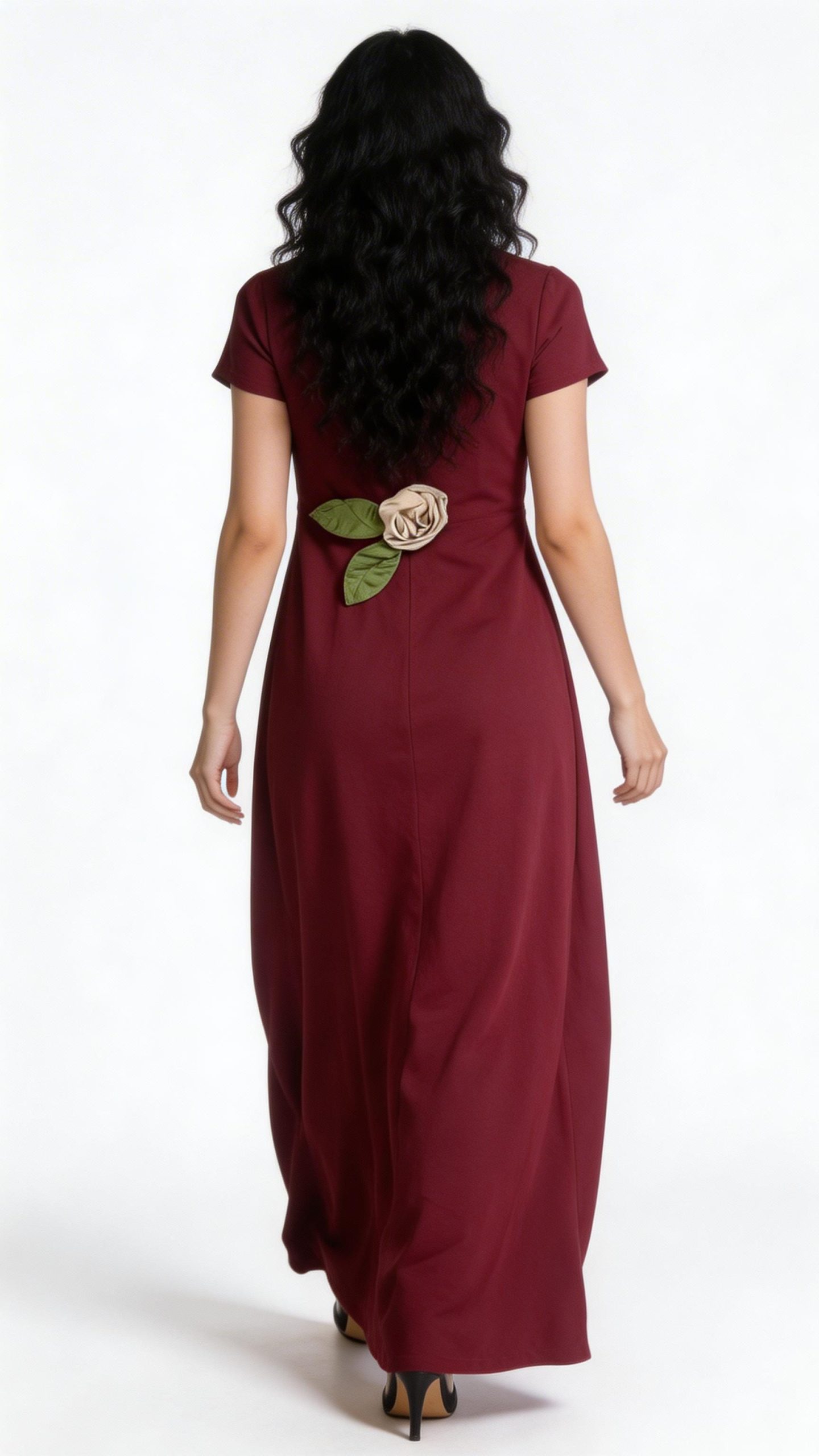 Φόρεμα μακρύ, διακοσμημένο με χειροποίητα λουλούδια και φύλλα από ύφασμα. Υπέροχο ένδυμα, ιδανικό να φορεθεί από το πρωί μέχρι και το βράδυ. Εξαιρετικό ρούχο για γυναίκες με εναλλακτικό στυλ που επιθυμούν να ξεχωρίζουν.