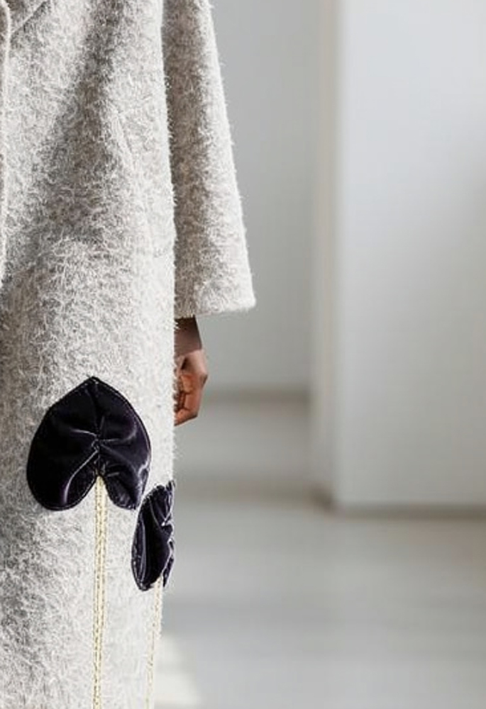 Παλτό μάλλινο,oversized, μίντι διακοσμημένο με βελούδινα νούφαρα. Υπέροχο επανωφόρι για τις κρύες μέρες και νύχτες του χειμώνα. Ιδανικό για γυναίκες που απολαμβάνουν την απλότητα και την άνεση.