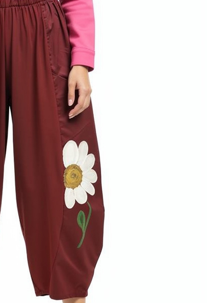 Κόκκινο viscose σαλβάρι, διακοσμημένο με ζωγραφική στο χέρι. Κατάλληλο για γυναίκες που αγαπούν την Ανατολή και επιθυμούν να ξεχωρίζουν. Ιδανικό για όλες τις ώρες της ημέρας.