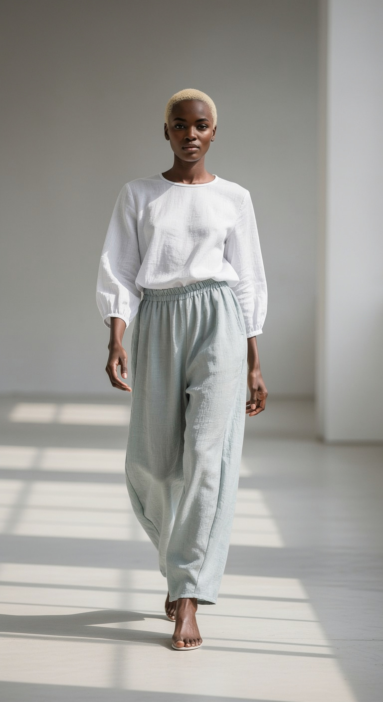 Γυναικείο παντελόνι από μετάξι και βαμβάκι. Μπορεί να φορεθεί όλες τις ώρες της ημέρας, για γυναίκες που αγαπούν την απλότητα.